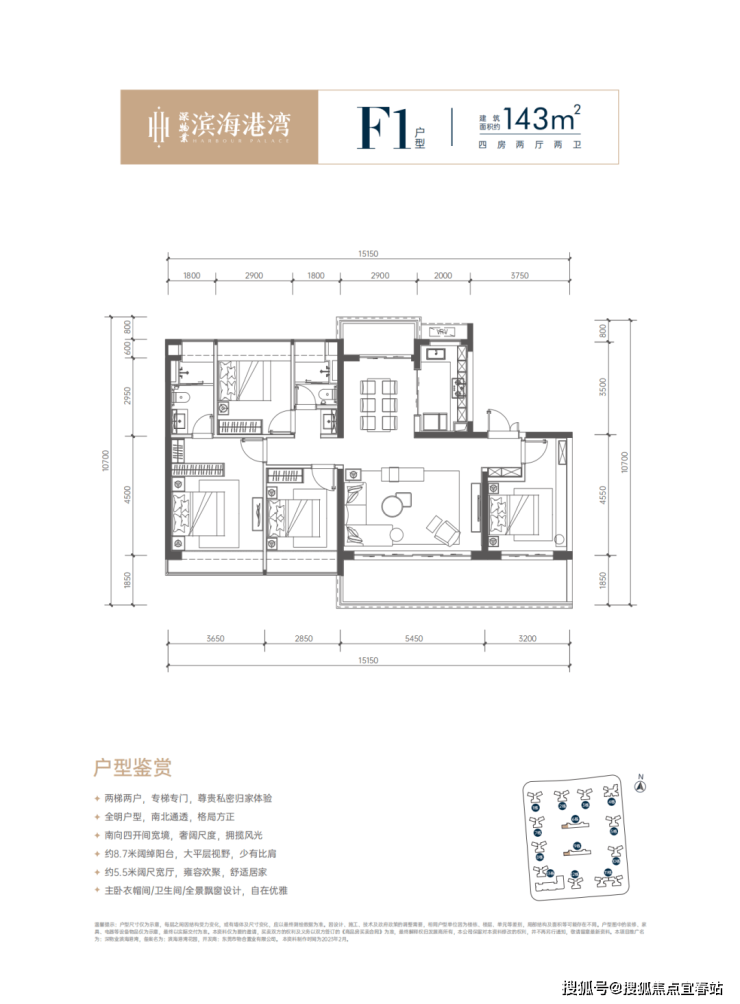 深物业滨海港湾项目主力产品为建面约95-143㎡纯境3-4房,四开间朝南,双阳台设计(部分户型)。明星户型采用板楼设计,还有约8.7米大阳台。