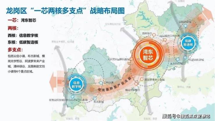 通过围绕“一芯”“两核”“多支点”主体功能布局。大运新城作为“一芯”的代表,位居“东进战略”最前沿,也是粤港澳大湾区经济腹地、辐射粤东北的“桥头堡” ,打造深圳都市圈的“东核心”。