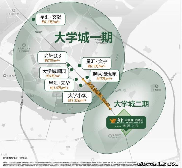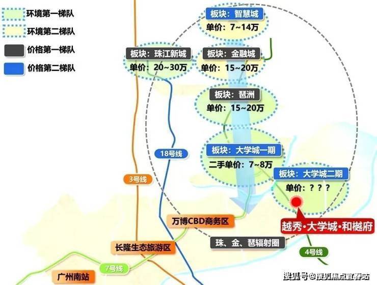 6,与大学城一期二手房价格倒挂,大学城一期产学研人才汇聚,目前二手7万+/㎡达到了番禺二手房价天花板,10年涨幅超200%!