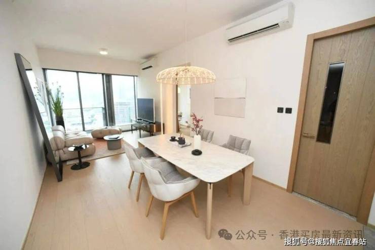 瑜一·天海1A座18楼A室,3房实用面积968方呎。客饭厅以长形开则,间隔宽敞实用,长约 7.2 米、阔约 3.25 米,层与层之间的高度约 3.225 米,连接约 27 平方呎阳台,配以落地玻璃趟门,可享开扬维港海景。