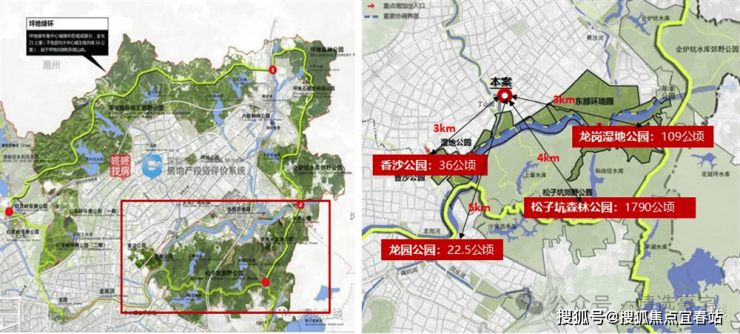 坪地绿环、香沙公园(规划中)、龙岗湿地公园、松子坑森林公园等超1800万㎡城市绿肺环绕