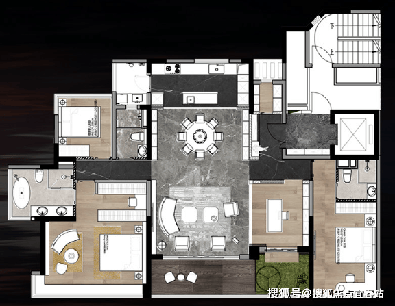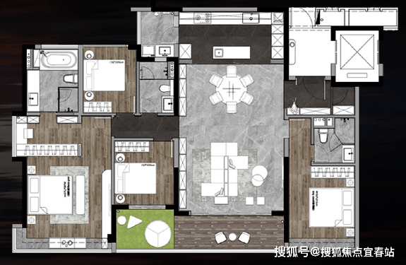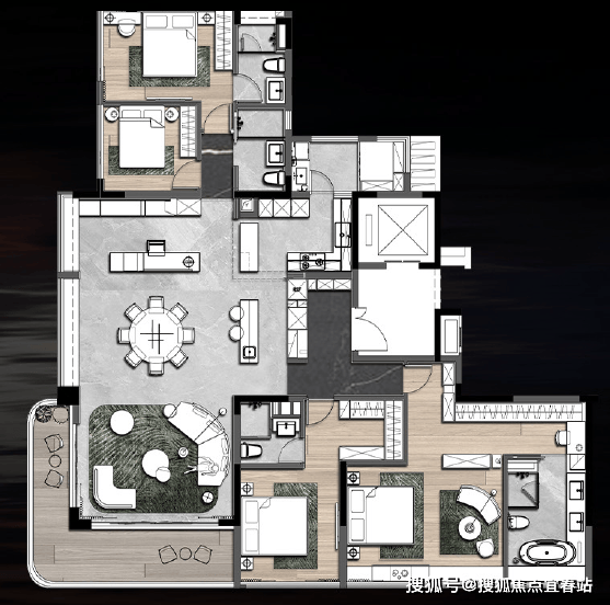 240㎡户型尺度最大,客餐厅一体,还打造了270°的观景阳台。