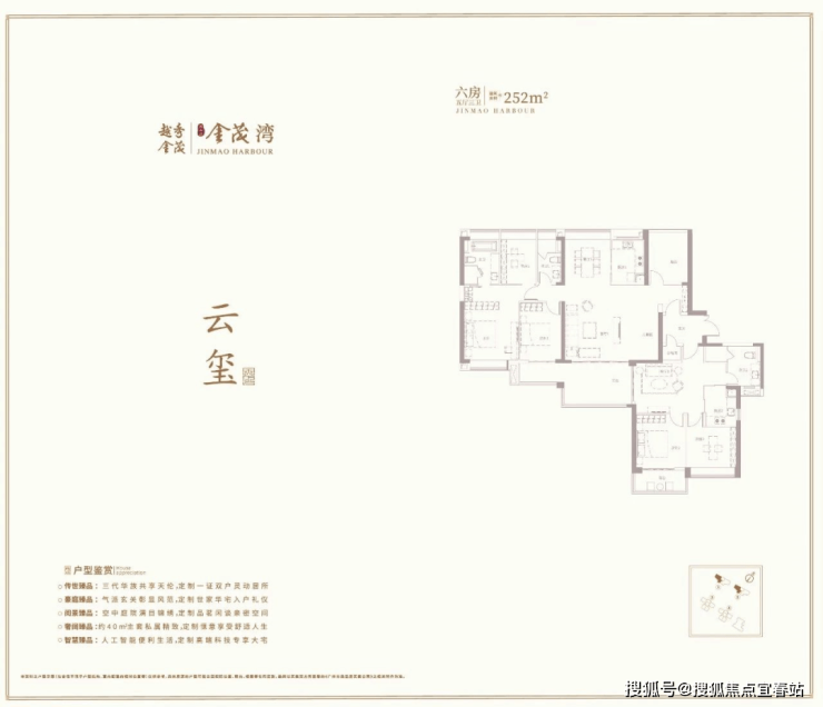 推出约252m²首创三代专利户型,房子分为左右两个套间,有为长辈精心打造的2房2厅1卫的小套间,是长辈的私人专属空间。