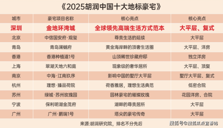 今年3月,在《2025胡润中国十大地标豪宅》榜单中,金地环湾城是深圳唯一上榜的豪宅产品。