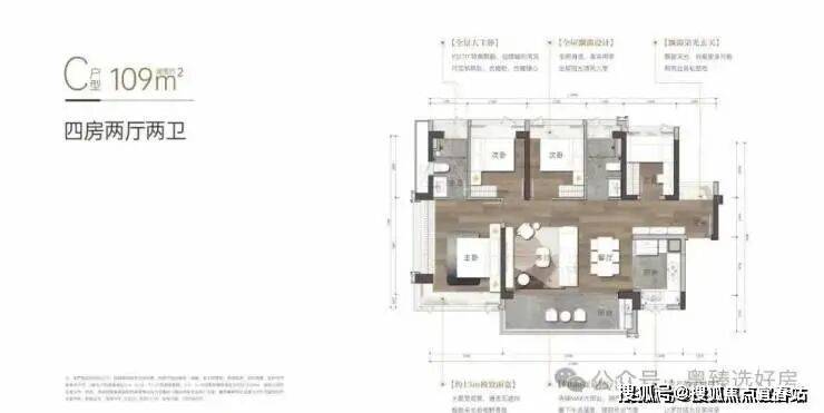 【产品面积】建面约108㎡/109㎡/138㎡~143m²海幕纯四房