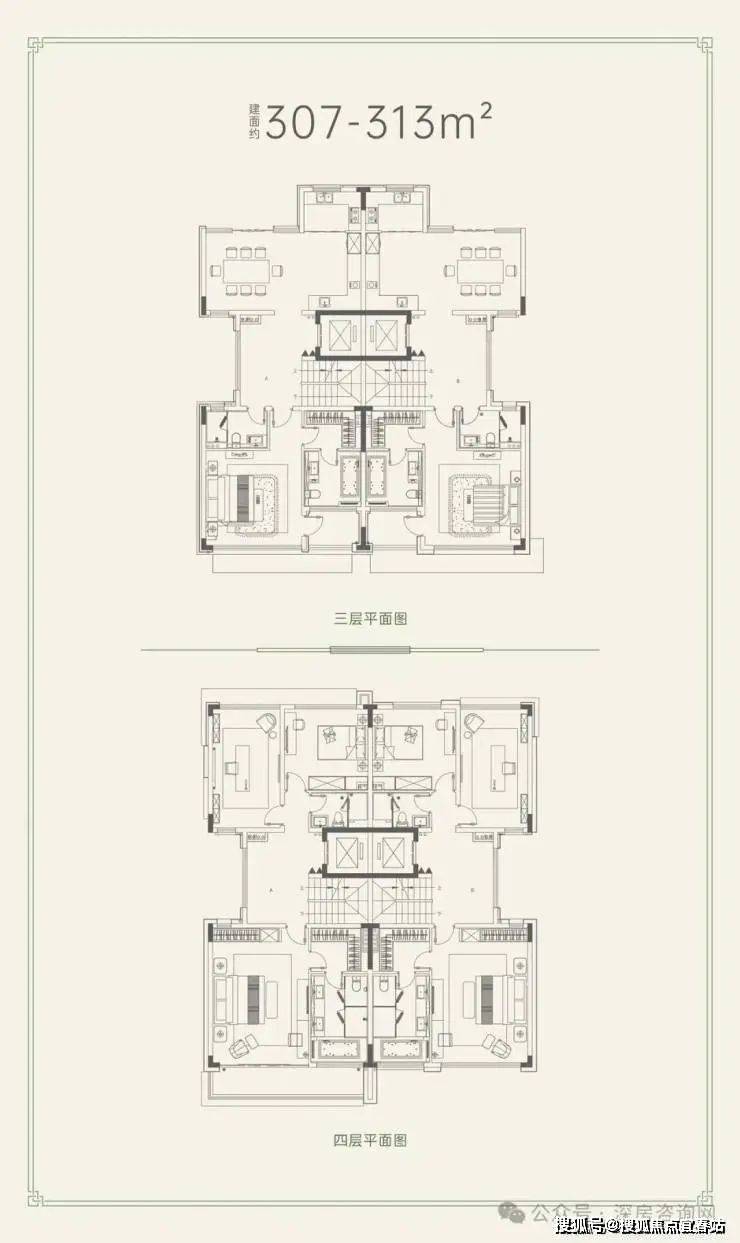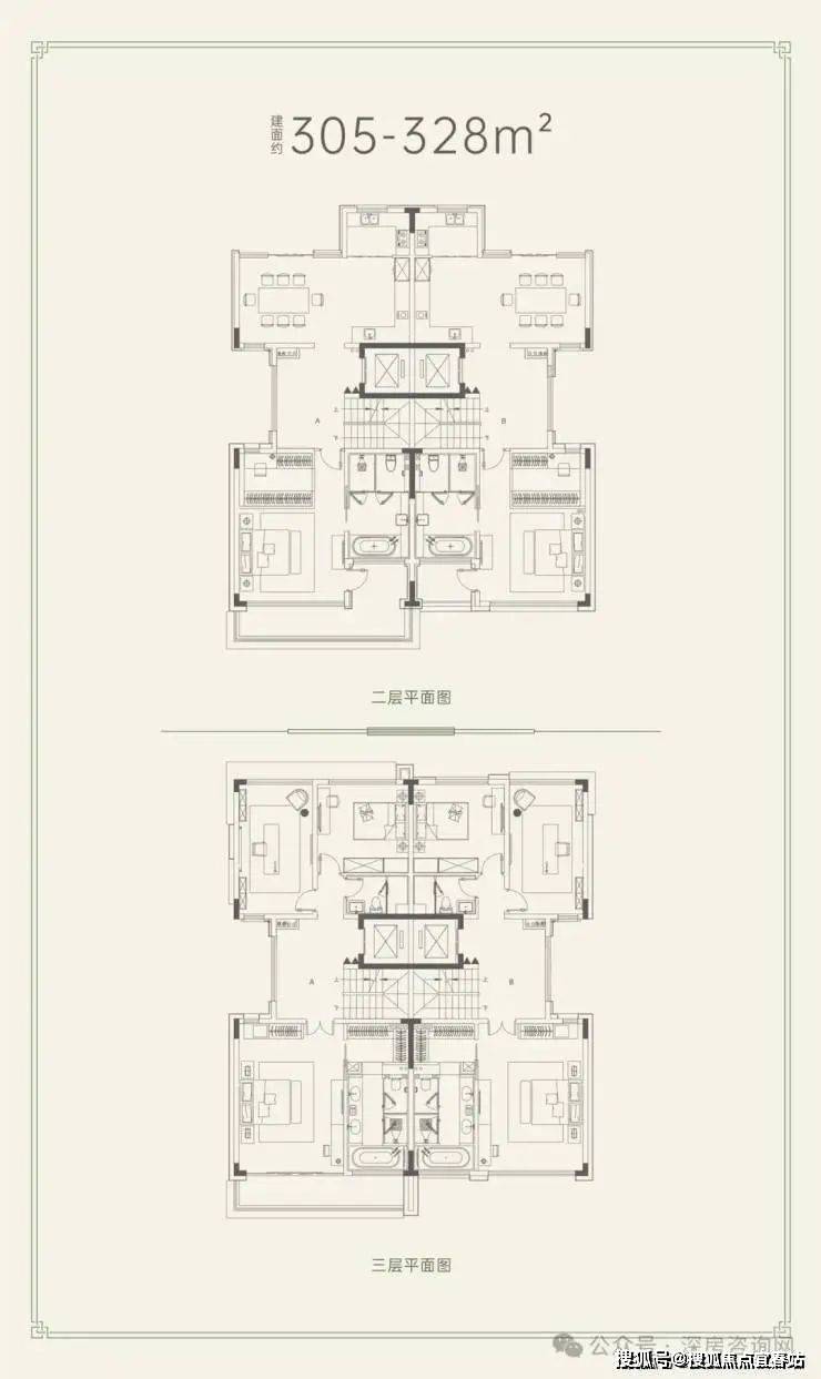 共有两个户型,建面约305-328平、建面约307-313平。一家人最好的相处模式,是既生活在一起,又互不干扰,每个人都有专属的私人空间。