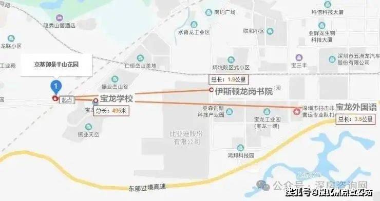 京基御景半山位于龙岗区宝龙街道宝荷片区,依山脚而建,总用地面积约6.3万㎡,规划总建面约31万㎡。容积率:3.45,绿化率:42.23%。由11栋共计15座高层住宅,以及13栋别墅住宅,另有1栋幼儿园和1栋综合楼组成。