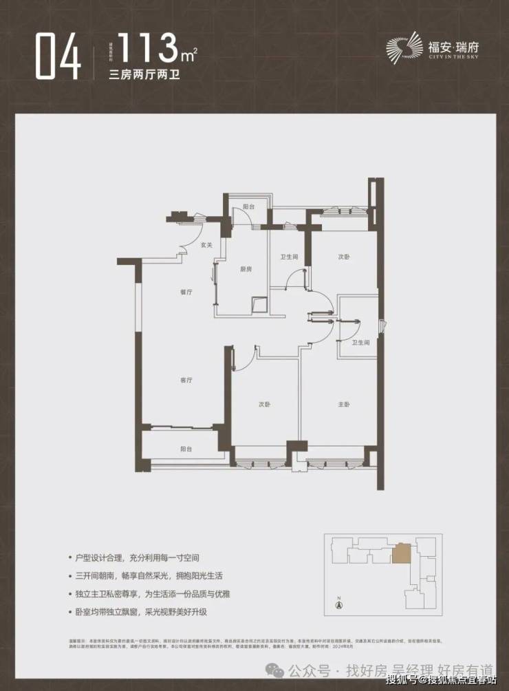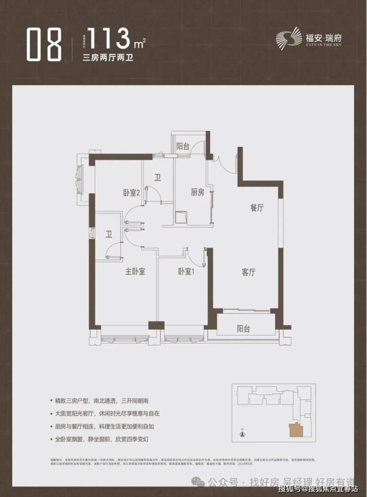 亮点:双阳台配置(生活阳台+景观阳台),北向次卧可改造为多功能房。