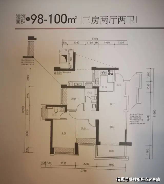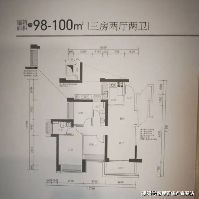 07.东南向【建面99㎡3室2厅2卫】,3梯6户,层高3.00米,总楼层46F;约390万