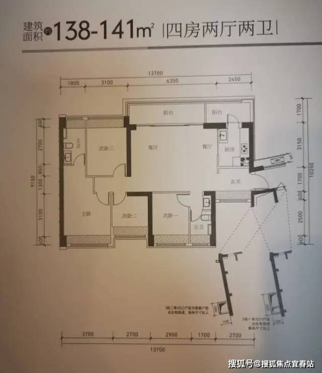 01.东北向【建面141㎡4居2厅2卫】2梯4户,层高3.00米,总楼层47F;约620万