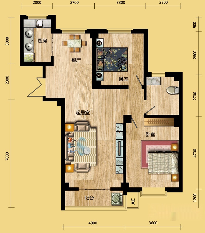 2室2厅1卫-C户型