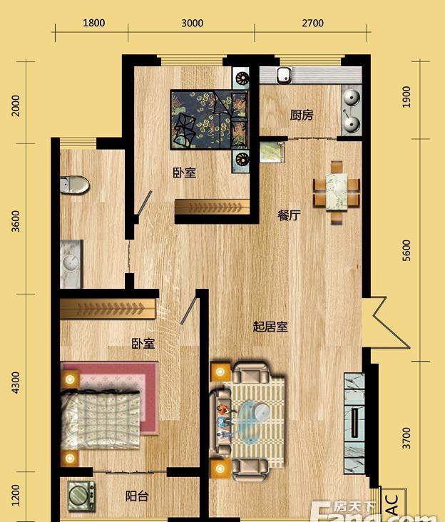 2室2厅1卫-F户型