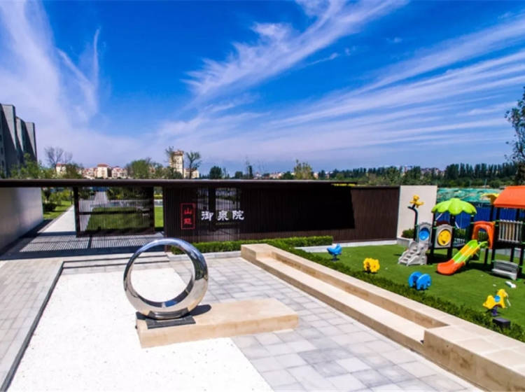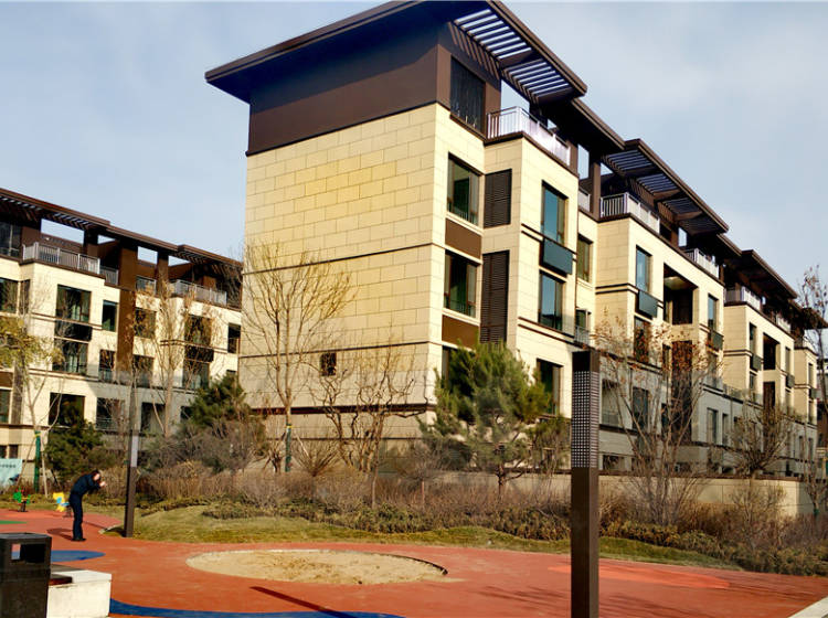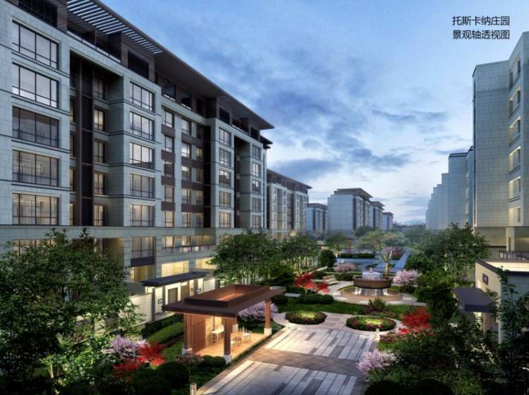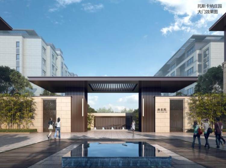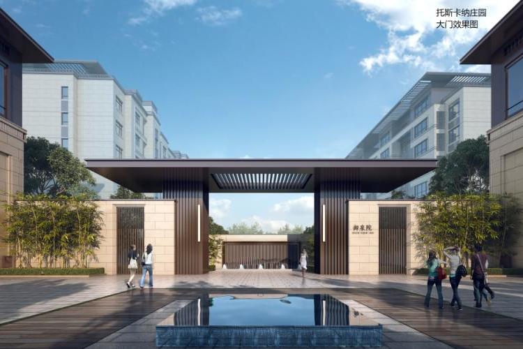 在建筑设计上,御泉院采用了新中式建筑风格为主要特点 以成熟的托斯卡纳风情为造园基准,结合中国传承千年的东方建筑智慧,相互融合,将传统中式建筑的精髓如对称感、沉稳感、规则感庄重感,与现代人的生活方式进行融合,凝练出最适合现代生活又富有传统文化特征的新中式建筑风格;建筑线条横平竖直视觉感受简约大气富有规则感和仪式感,灰色建筑石材与暗色屋檐,搭配木雕细节装饰,让建筑看起来庄重典雅,而且像代表传统符号的回纹木雕窗的大量应用,增加建筑的传承属性,本期规划出这样的建筑风格 完全为了匹配城市比较高端的人士的社会身份特征;