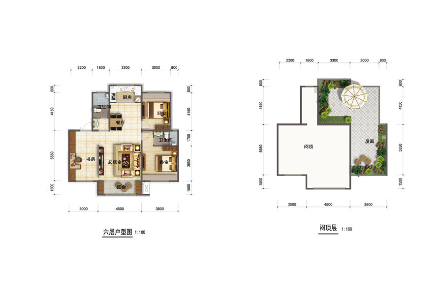 阁楼露台:顶楼赠送阁楼露台,买一层送一层,享有大面积室外空间;