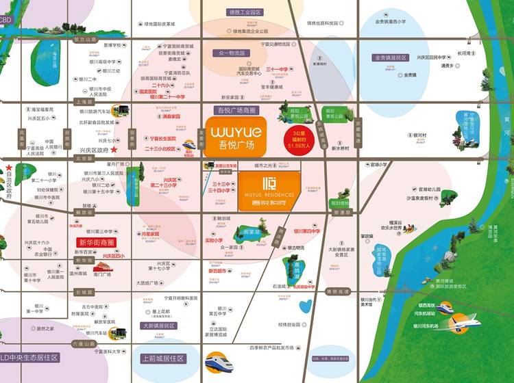 新城控股凭借住宅地产和商业地产双轮驱动的独有战略模式,首进银川,打造银川吾悦广场商业综合体及住宅项目。其中综合体总占地119亩,建成后将是集酒店、办公、休闲娱乐等较具专业水准、功能齐备,配套设施最完善的城市综合体项目。商业业态定位是“3+3+3“的商业模式,即34%的餐饮+33%休闲娱乐+33%零售,打造吃,喝,玩,乐,游,购为一体的体验式业态为主的商业综合体。