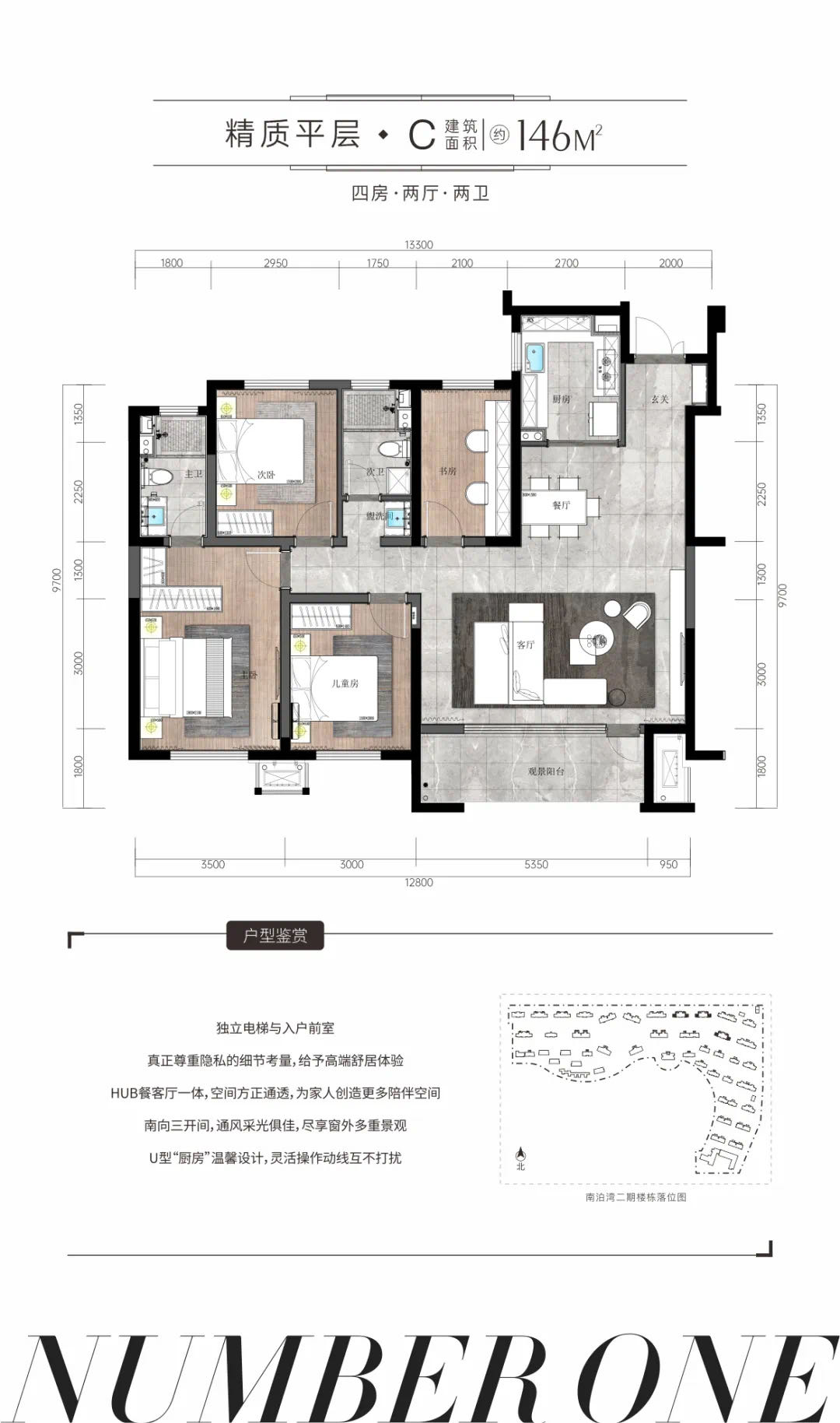 在售 户型方正 主卧带卫 带衣帽间 全明格局
