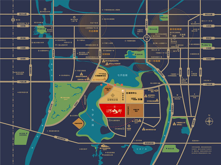 医院:西北最好的附属医院及第五医院、宁夏三级甲等儿童医院;南侧规划中医院