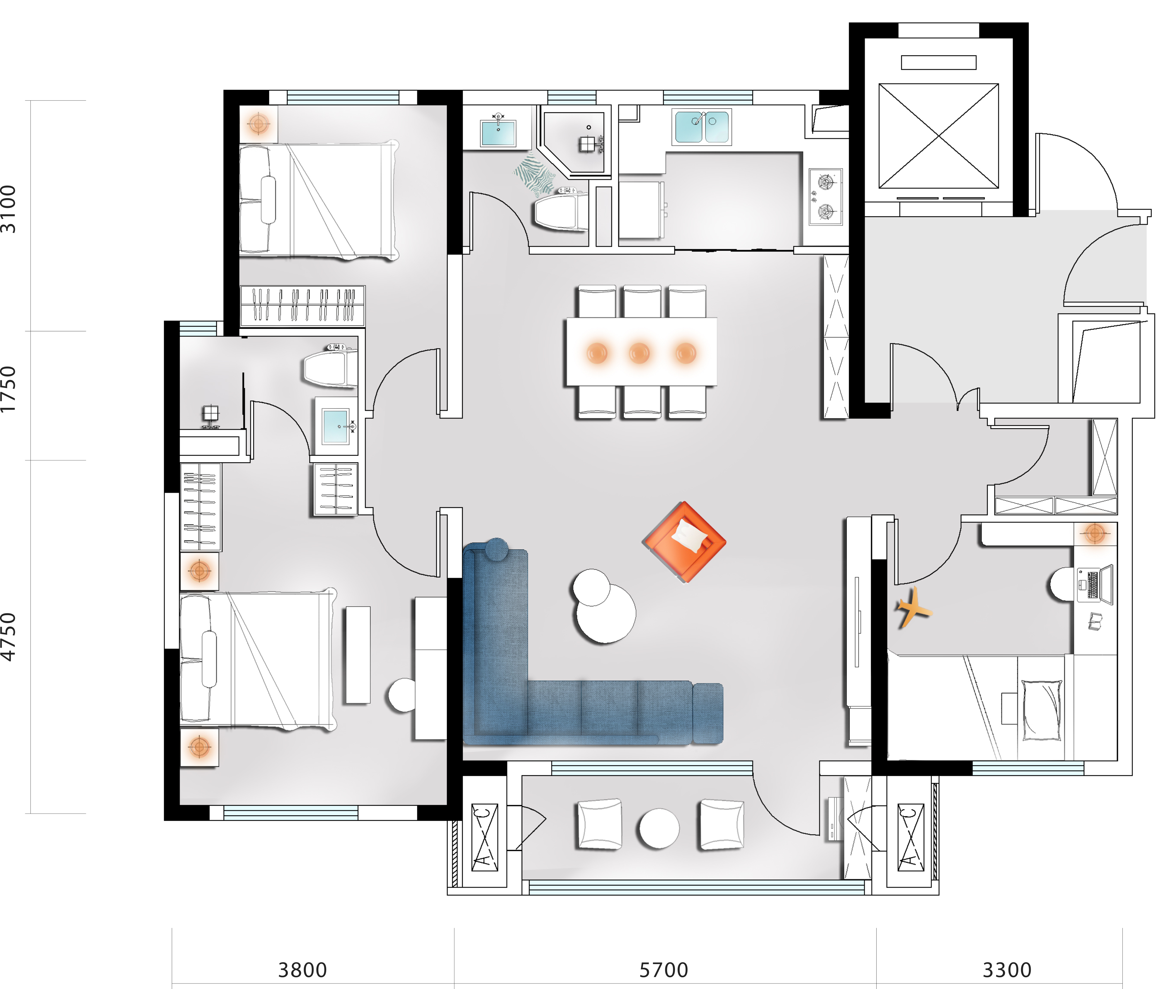 在售 南北通透 户型方正 全明格局 客厅朝南 主卧朝南