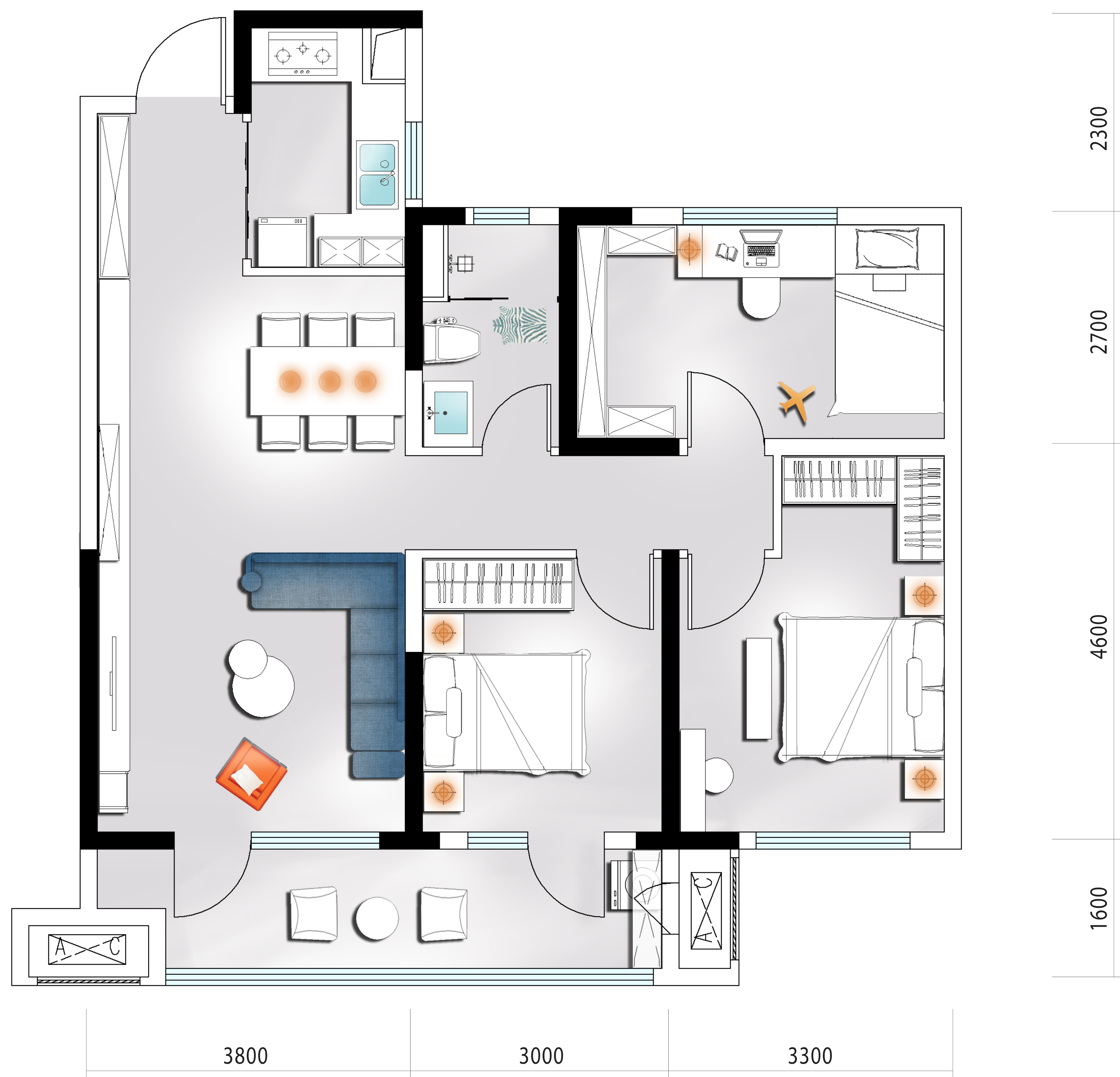 在售 南北通透 户型方正 全明格局 客厅朝南