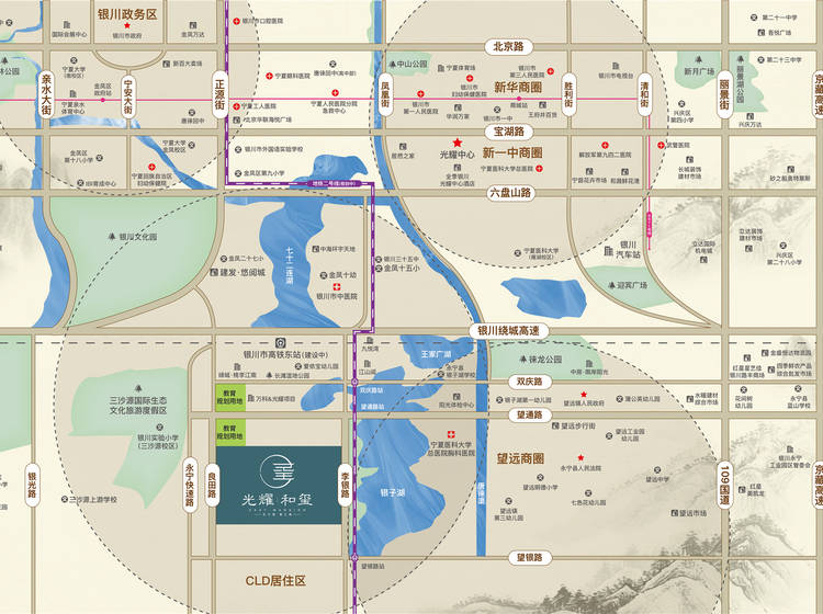 学校:爱依宝幼儿园,银川实验小学、丰盈小学,银子湖中学,三沙源上游中学