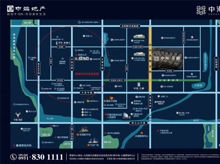 银川市金凤区大连中路与万安巷交叉路口往北约210米(原中海九樾营销中心)