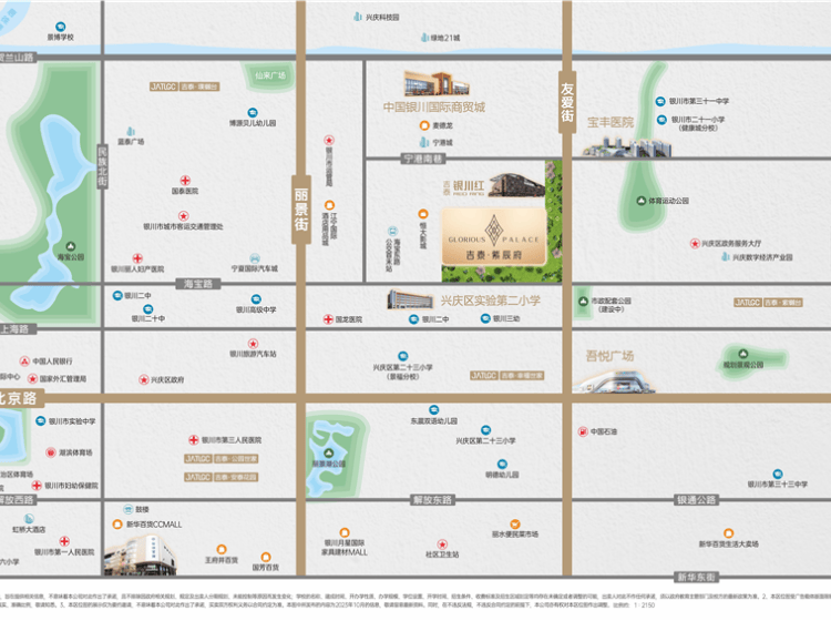 项目尽享两纵三横交通路网,出行非常便利。西侧的丽景街、东侧的友爱街作为城市南北向主干道,贯穿海宝路、上海路、北京路等城市交通要道,而北京路更是作为银川城市中轴,横贯市辖三区。从项目出发,能快速通往银川市区各个板块,快速抵达银川汽车站、银川河东机场、银川火车站,立体交通路网出行无忧。