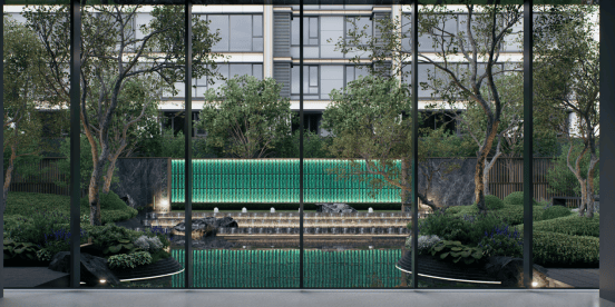 ·近60米城市会客厅沿团结大道缓缓铺展,超尺度城市雕塑,带来震撼的视觉体验。定制约4.0高的电动移门,奢华程度堪比“王府级”。再加上入口处的龙鳞水景以及孔府石景,实现了艺术性与尊崇感的交织交融。