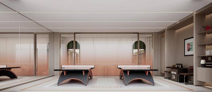 ·进门后是6m挑高的城市会客厅,将塞上江南的城市文化通过设计手法,巧妙的融入空间中。在空间规划上,摒弃「面子优先」的空间营造逻辑,以实用主义打造亲子会客空间、共享便民设施