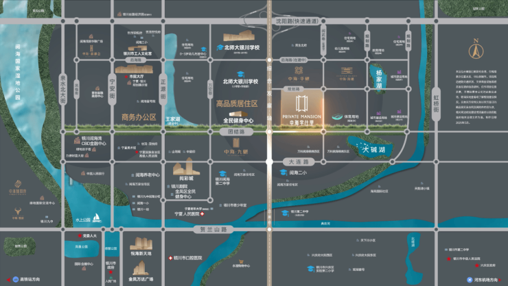 沈阳路、正源街等城市主干道,直通银川站、绕城高速,依托4横5纵路网多维路网,串联全城。