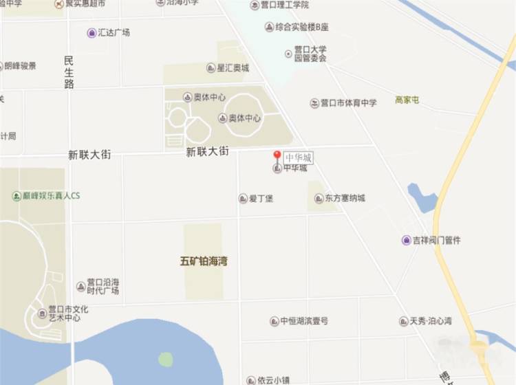 营口中华城位于沿海产业基地博文路与新联大街交汇处,奥体中心南侧。项目总规划用地面积约23万平,总建筑面积约40.7万平,分两期开发建设。正在开发的一期地块总占地面积约9.1万平,总建筑面积约12.7万平。全力打造东北首席滨海城市综合体。设有商务办公,酒店式公寓、写字楼、临街旺铺,在二期地块规划建有超过10万平的大型商业中心。可以满足人们的多种功能需求。制定了缔造城市新中心,打造未来营口新地标的宏伟规划。 中华城的开发公司是营口现代国际名店城置业有限公司,隶属于厦门融坤集团下属的融坤地产。多年来融坤地产一直致力于打造高端精品地产项目。我们有着丰富的开发经验,我们有能力也有信心在营口为市民打造一个新的城市核心,为推动营口的城市发展献一份力。