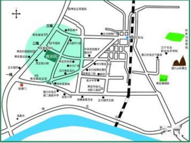 (正大购物、前进小学、育才中学、熊岳高级中学、建设银行、农行、营口银行、二院等配套齐全 东部有 望儿山风景区,温泉洗浴度假村,熊岳植物园 地下停车场
