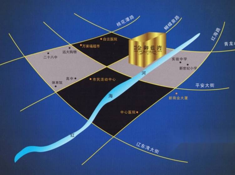 金御蓝湾,位居红海河畔北侧,蝴蝶泉路与青龙山大街两条城市干线与社区擦身而过。4层叠拼别墅;多层电梯花园洋房;新颖的半地下叠院;8.2米超大宽厅,尽显大家气派。处处人性化的设计,是金御蓝湾对于生活美学的致意;社区内高标准规划的幼儿园,全面承担起子女们健康成长的安全环境因素,体贴的帮助年轻父母减少每日早晚的时间危机,轻松地给孩子们提供一条坚实的起跑线。 约4万平米商业配套,毗邻蝴蝶泉路与青龙山大街一字排列,位于社区外延的规划设计,在优质顺接城市繁华的同时,有效帮助社区隔离纷乱干扰,让居于此的城市生活,只有便捷与舒适,没有浮躁与喧闹。金御蓝湾,近1500席泊车空间,全方位配合业主现代生活要求,温馨照顾未来高品位居住人群的高品质城市生活细节。