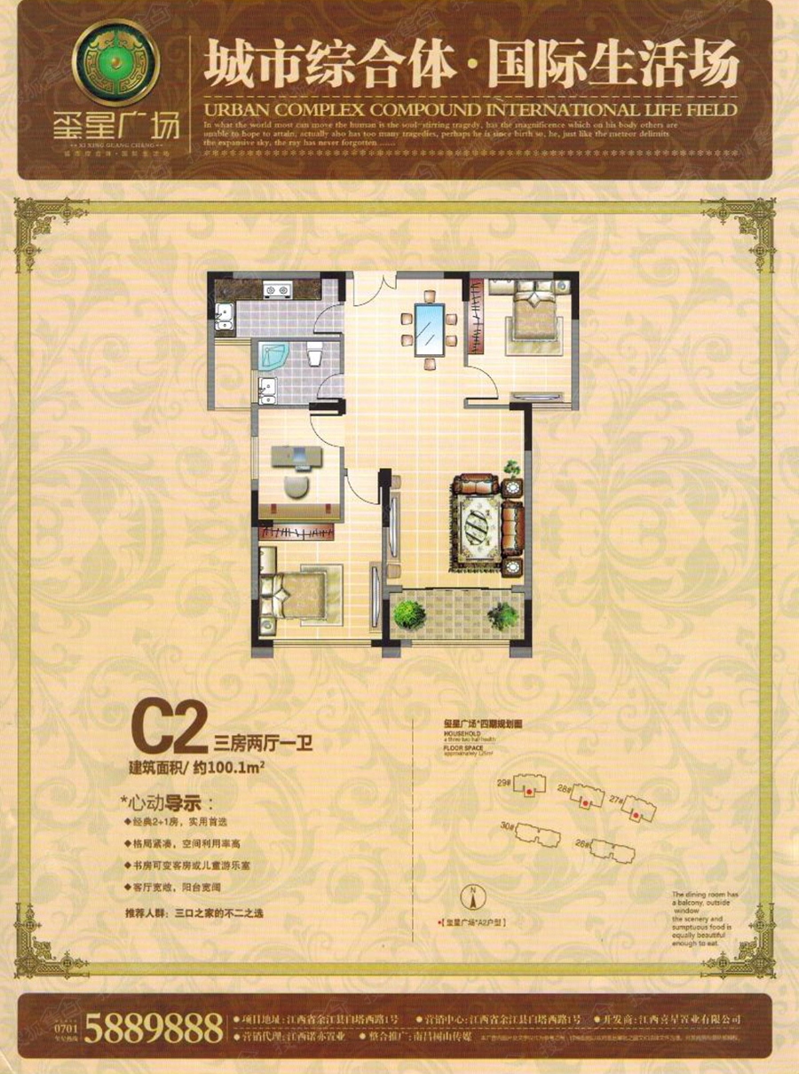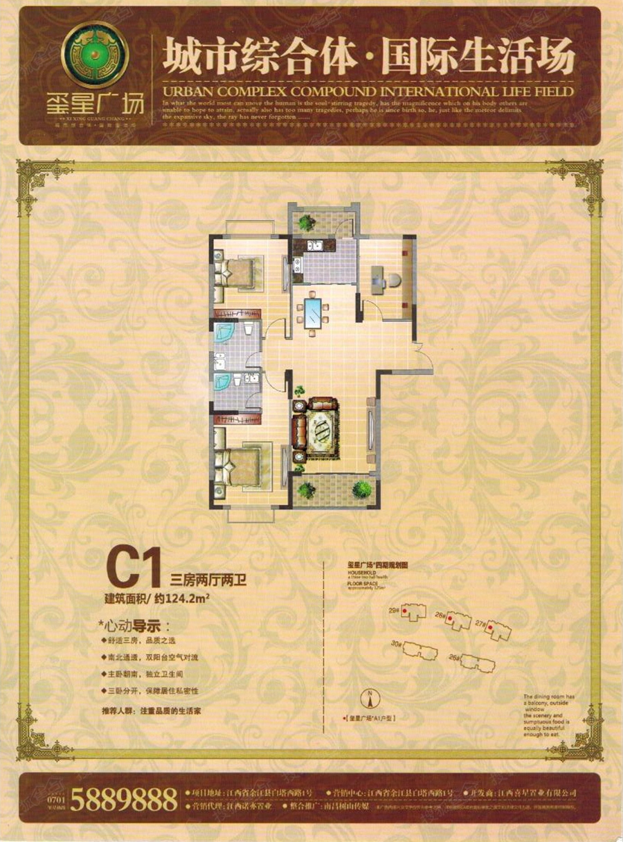 项目位于白塔西路和世纪阳光大道交汇处,地处余江城市主干道,地段优越,生活配套丰富,背面直达同乐广场以及电影院,周边还有昌溪河百米景观长廊,满足全方面生活需求。