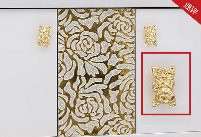 拉手沿用古典艺术风格,就像艺术品般的精巧金色雕花,给柜体增加一股高贵优雅的味道。