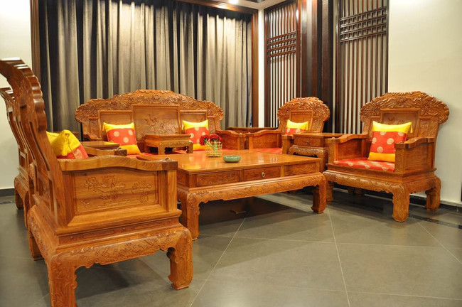 昨日,东阳大成尚品红木家具展厅内,31岁的张女士和闺蜜陈女士两人经过一番精挑细选,最终下单购买了两套缅甸花梨的红木沙发十件套。“五六年前我结婚时,我妈妈说要给我陪嫁一套家具。那时候我对美式、欧式家具情有独钟,觉得款式好看,坐着也舒服,当时花了10多万买了一整套欧式家具。可是不过短短几年,真皮制作的沙发就被家里的熊孩子涂涂画画加上刀划手扣,变得面目全非,反倒是婆婆家原先的一套红木沙发十几年了,还历久弥新,木材的表层的颜色也在空气氧化下越来越稳中,越看越有味道。”张女士说,今年自己家和闺蜜家都因为拆迁迁了新居,在自己的鼓动下,闺蜜也决定买套传统的红木家具布置新家,所以两人一起逛了红木家具市场,最终看中了东阳大成尚品红木家具展厅内的一套莲花如意沙发十件套。