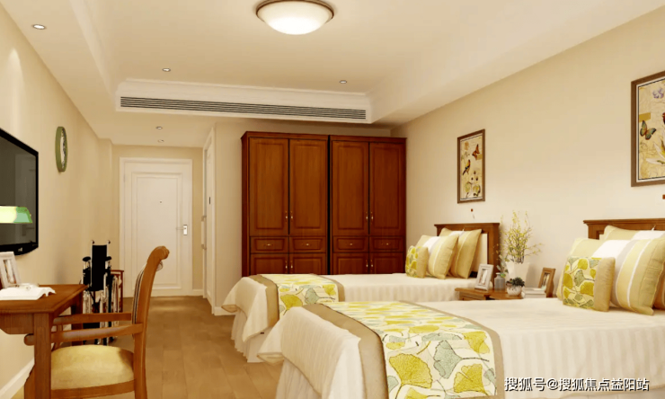 居住空间:提供单人间、双人间、多人间等多种房型,朝南设计采光充足,配备独立卫浴、24 小时热水、恒温呼叫装置、防滑地板、扶手等适老化设施,偏瘫、失能长者房间额外增设护理床、移位辅助设备,满足日常照护需求。