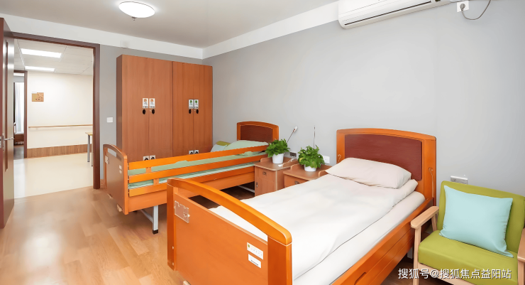 在适老化设计方面,养护院引入毫米级标准:公共区域采用1.8米宽无障碍电梯、中央空调与新风系统,走廊墙面设置双层扶手,地面铺设防滑地胶;房间内配备智能呼叫系统、防滑地胶、电动护理床,部分房型增设生命体征监测手环;卫生间安装扶手、溢水报警器及智能温控系统,床铺高度适中并配护栏,家具采用圆角处理以避免磕碰。全院通道宽度≥1.8米,电梯轿厢配备语音播报系统,房门宽度≥1.2米,满足轮椅通行需求。
