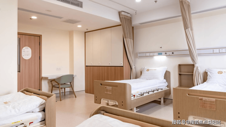 护理院总建筑面积1.2万平方米,规划护理床位380张,涵盖单人间、双人间及VIP套房。所有房间配备负压吸痰、中心供氧、紧急呼叫系统,卫浴间安装防滑地垫及L型扶手,门宽85厘米保障轮椅通行;VIP套房增设会客区与家属陪护床,面积达50㎡。公共区域设有书画创作室、多功能影音厅、康复训练室及200㎡屋顶花园,满足长者社交、娱乐与康复需求。全院采用无障碍通行设计,走廊安装记忆回廊(老照片墙辅助认知训练),日均康复训练服务量超150人次。