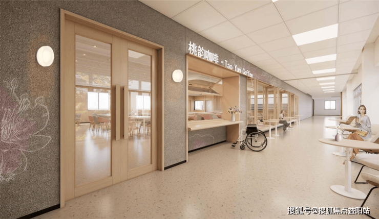 机构总建筑面积达1.18万平方米,以长者安全与舒适为核心,采用全适老化设计,细节处处体现人文关怀。“回字形”走廊设计确保无障碍通行,1.8米宽走廊设双层扶手,地面采用防滑地砖与静音垫层,既防滑又减少噪音干扰;居住空间均为南向布局,采光充足、通风良好,所有房间配备独立卫生间、空调、专业护理床等,卫生间设有L型助力把手、折叠沐浴椅,拎包即可入住。