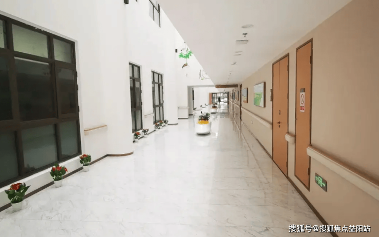 所有房间配备防滑地砖、圆角家具、无高差地面、智能感应夜灯及紧急呼叫系统;全院采用风雨连廊设计,电梯轿厢配备语音播报系统,房门宽度≥1.2米,确保轮椅通行无障碍。