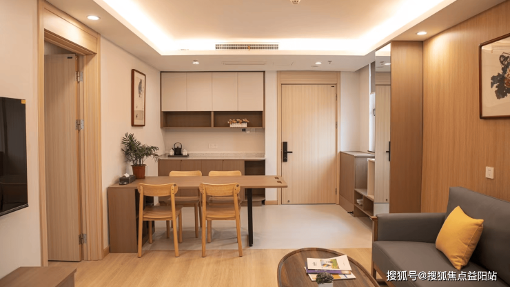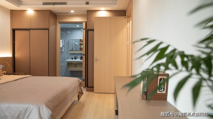 所有房间均通过适老化改造:家具采用圆角防磕碰设计,独立卫浴配备防滑地胶、安全扶手及24小时热水系统;床头安装标准化拉伸报警装置与感应雷达,实时监测睡眠质量、心率等数据,异常情况自动触发警报。公共区域设置1.8米宽无障碍走廊、连续扶手及休息座椅,每层配备共享活动空间与智能饮水机;全院覆盖24小时监控系统,浴室安装毫米波雷达防跌倒装置,识别准确率达98.7%。此外,长者可通过智能语音控制窗帘、灯光、空调等设施,提升生活便利性。