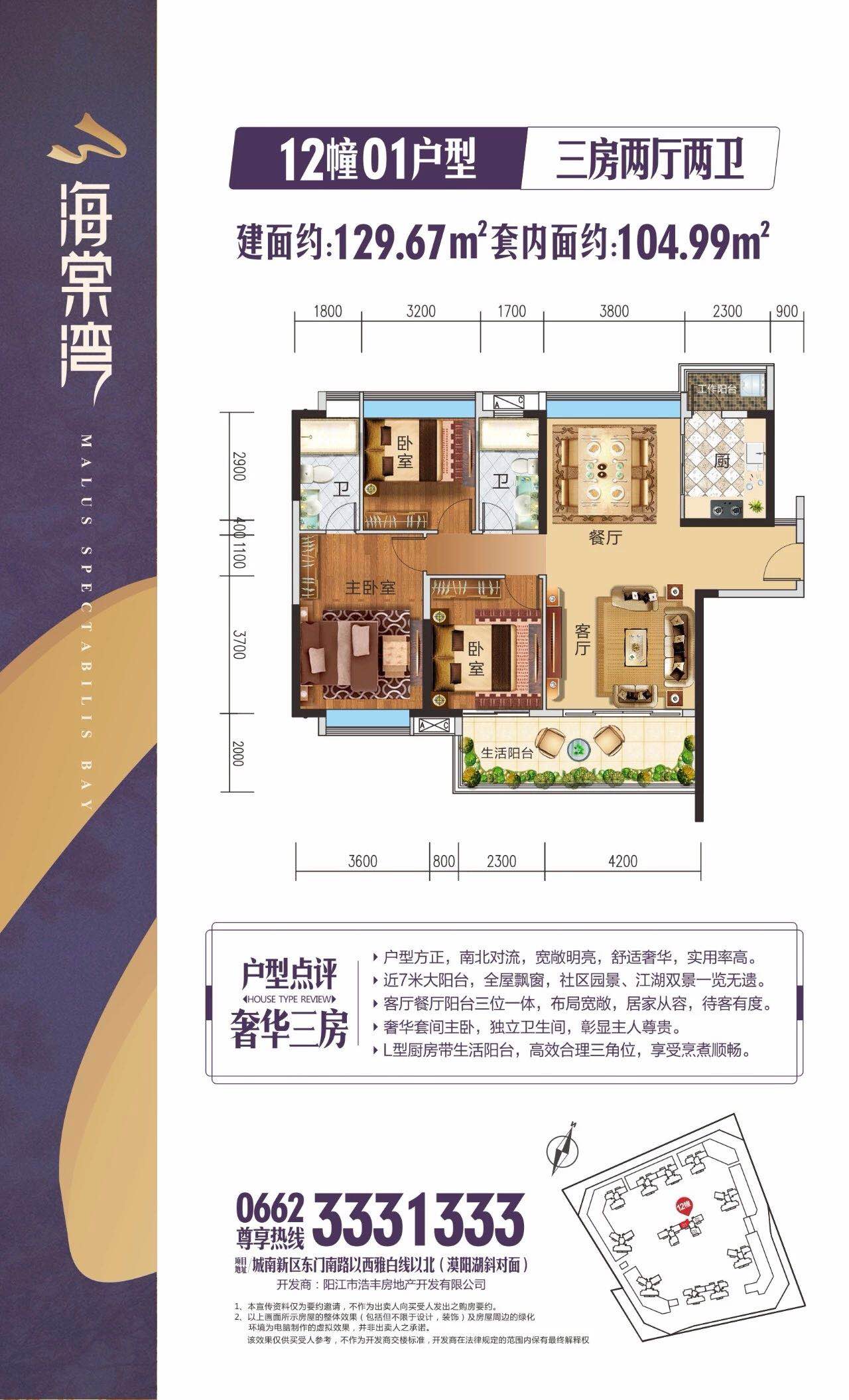 项目位于阳江滨海新区的繁华地段,城市南部的核心位置——东门南路与雅白线交界处,马路对面400米就是高铁阳江站,交通,配套、教育、医疗等各项目都是非常完善的,城南发展已经10年了,区域的发展日渐成熟,生态公园的完善,周边高档的小区住宅,商业、国际金融中心等城市最为核心的人力及资源汇聚于城市南部中心功能区,已是高端人群的最理想的中央生活区,新亚洲风格建筑设计,临漠阳江一线江景洋房,打造瑰丽环境,保证居住品质。