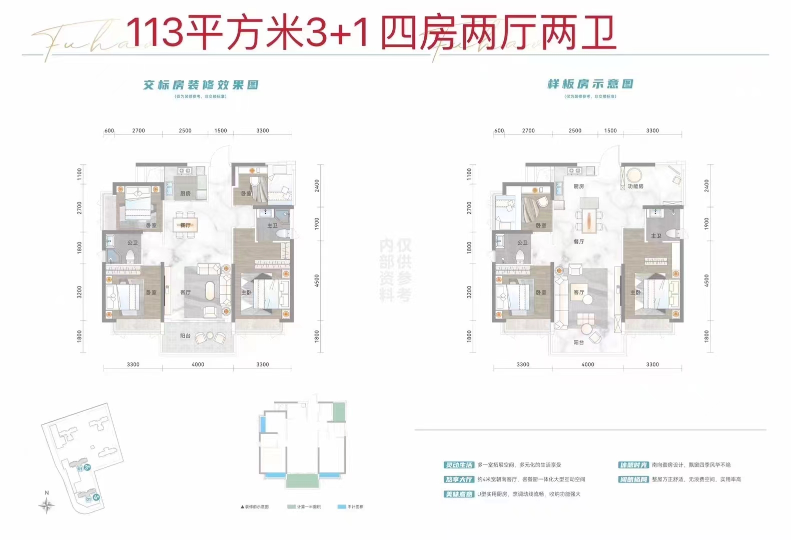 福昊·书香悦府以领前市场设计的N+1精改户型,直接迭代阳江人居标准,重新界定居住高度。建面约113-161㎡四至五房,每个户型均含多出一室的拓展房间,实用率近100%,让居住者享受的,比投入的价值更大。