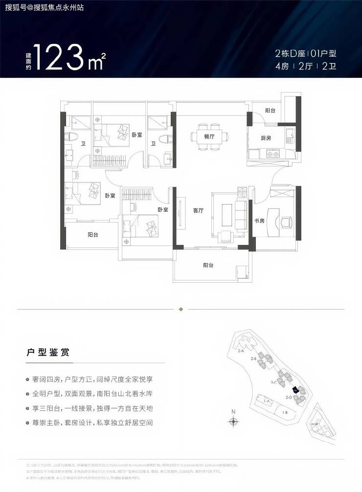 123㎡四房:首选2栋D座01户型(西南朝向),南北通透 + 双面景观,适合三代同堂家庭。