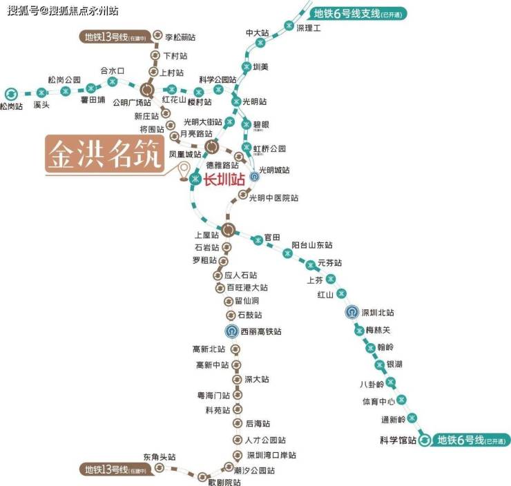 ●地铁13号线(规划中):通过6号线1站换乘至13号线(上屋站换乘),6站即可到达留仙洞总部基地,10站直达科技园。13号线是一条快线,也是深圳未来最有价值的一条地铁线,被称之为科创线,13号线把5个湾区核心的科技产业板块串联起来,北连接松山湖总部,往南经过光明科学城、留仙洞总部基地、南山科技园、深圳湾超级总部基地,抵达深圳湾口岸连接世界。