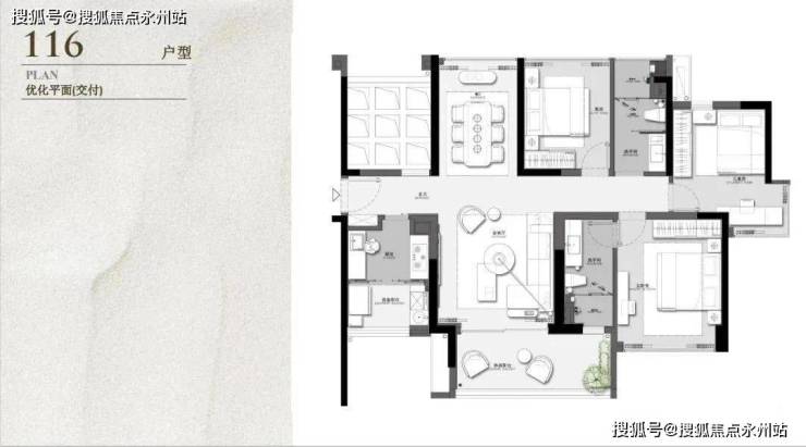 建面约116㎡,原始结构是三房两厅两卫两阳台或三阳台,奇数层是客厅和厨房配有阳台,偶数层是餐厅、主卧和厨房都配有阳台,奇数偶数层入户玄关处都有一块镂空,搭板可以多一个卧室,不能搭的话整体户型结构、功能间配比及分布也还是合理的。