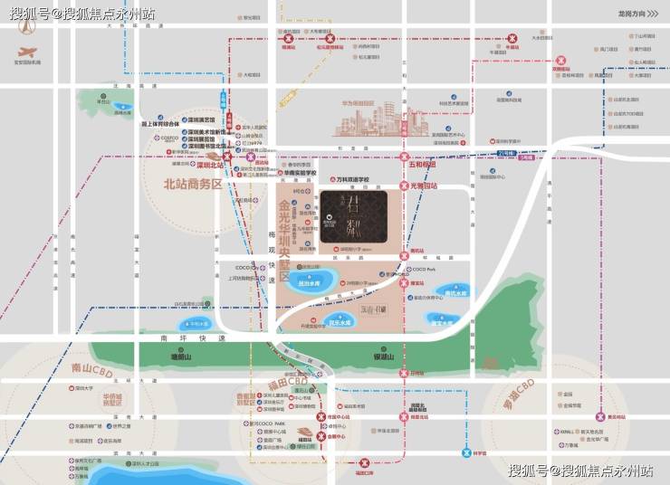 金光华龙岸君粼,由金光华集团开发,位于龙华区民治街道雅园与华南路交汇处,项目西侧是华南国际物流中心,8号仓奥特莱斯,南侧看民治水库,北侧是万科四季花城,东侧是10号地铁线“光雅园站”距离约230米,10/21号地铁线“南坑站”距离约300米。(深圳金光华龙岸君粼售楼处电话:400-992-0669)
