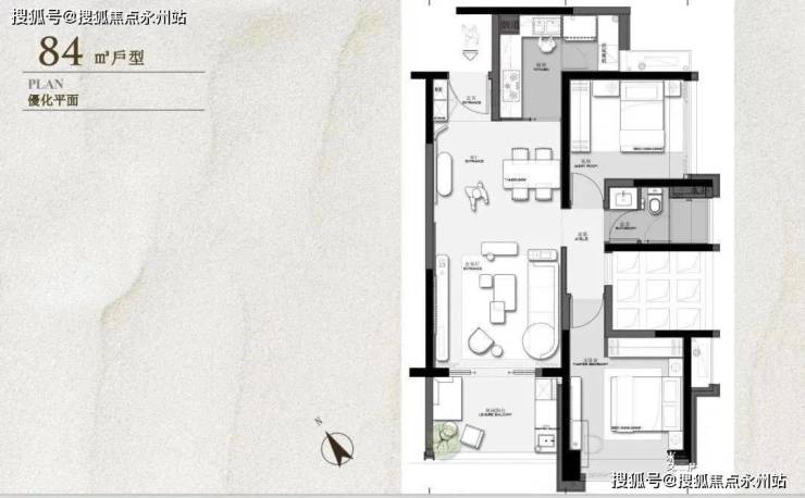 建面约84㎡,原始结构是两房两厅一卫两阳台,奇数层和偶数层都是卧室出阳台,主卧与公卫中间有一块镂空的地方,搭板的话改个三房没啥问题