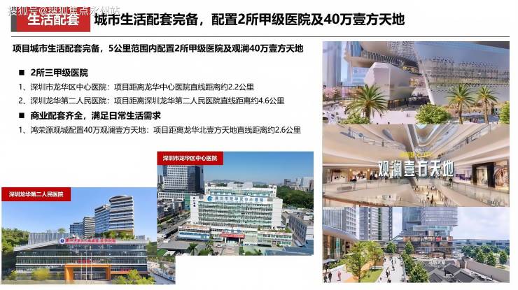 区域商业标杆:5 公里范围内有福城天虹购物中心,未来鸿荣源观城壹方将建成 40 万㎡商业综合体(含 20 万㎡集中商业),定位 “壹方天地 2.0”,引入国际一线品牌。