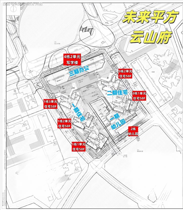 本次首推的08地块,备案名:未来平方云山府,由鸿荣源集团打造,共分3期建设,总占地面积约2.73万㎡,总建筑面积约37.41万㎡,计容建筑面积约27.51万㎡,容积率9.23,绿化率32.01%,共由5栋58-59层高住宅组成,其中1栋1单元住宅59F,1栋2/3单元住宅58F,3栋1单元/2单元住宅58F,4栋1/2单元写字楼35F,2栋是1所18班幼儿园,配建有公交首末站。